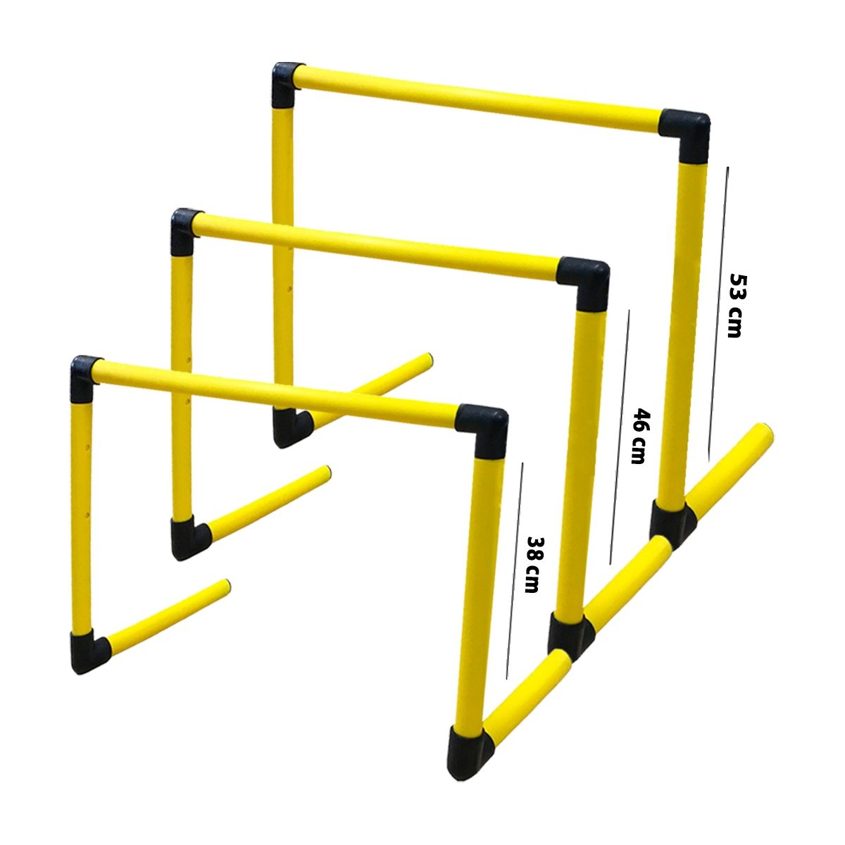 Barreirinha para treinamento de agilidade, fabricado em PVC de alta qualidade e resistência. Largura de 60 cm e altura ajustável em 38, 46 e 53 cm. Dobrável para facilitar o armazenamento e transporte. Montagem com botões e pinos de fácil manuseio. Marca: Vinex.