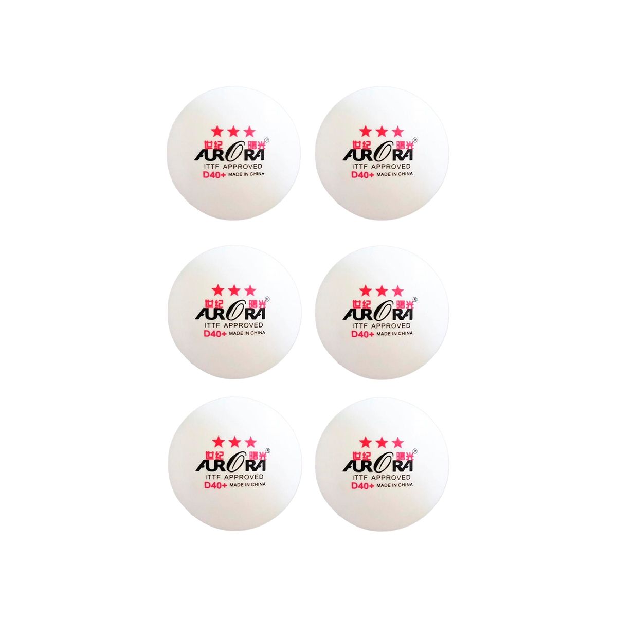 Bola Tênis de Mesa Oficial, contendo 6 unidades, confeccionada para mesa-tenistas profissionais, três estrelas 40+ (Diâmetro: 40 mm) Produzida em plástico. A cor branca e o acabamento sem emendas aparentes garantem melhor fluidez durante a partida. Aprovada pela I.T.T.F. Peso unitário: 2,7g. Marca: Aurora.