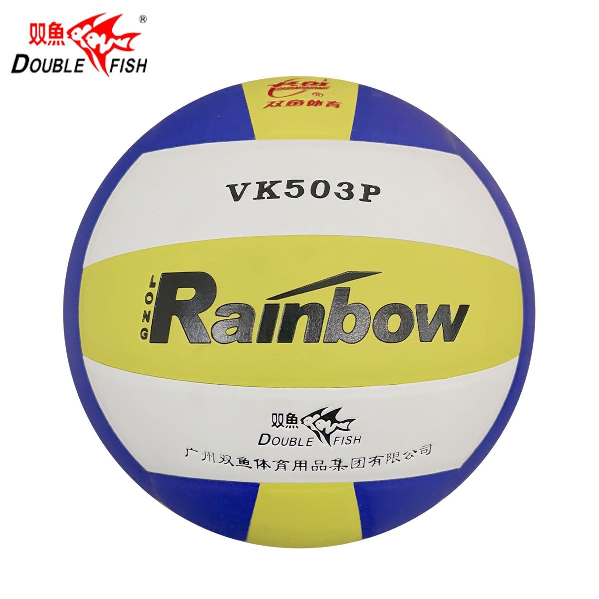 Bola de Vôlei fabricada em PVC matrizada, contendo 18 gomos, pesando de 260-280g, circunferência de 65-67cm. Marca: Double Fish. Modelo: VK503P.