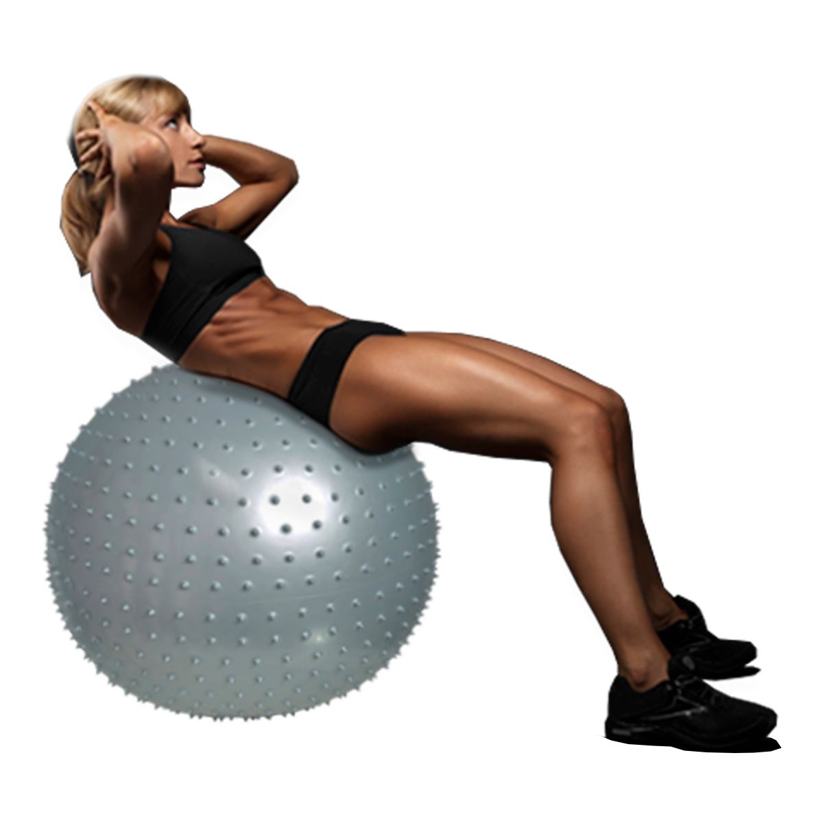 Bola de Ginástica Massageadora 65cm, produzida em PVC de alta resistência. Utilizada em aulas de pilates bem como para exercícios de alongamento, reabilitação, clinicas, academias, centros esportivos, etc... Possui superfície com pontos massageadores que além de massagear, absorvem melhor o contato com o corpo. Acompanha bomba para enchimento. - Capacidade: 250Kg;