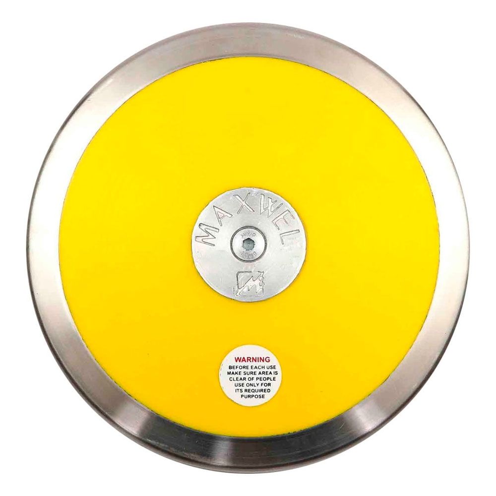 Disco de atletismo, pesando 1,5 kg, centro e borda fabricados em aço galvanizado, pratos em plástico abs. Possuí 65% do peso distribuído na borda do disco. Diâmetro do aro externo de metal entre 200 e 202 mm, diâmetro da placa de metal entre 50 e 57 mm, espessura das placas de metal entre 38 e 40 mm e espessura do aro de metal entre 12 e 13 mm. Recomendado para competições e treinamento. Marca: Maxwel.