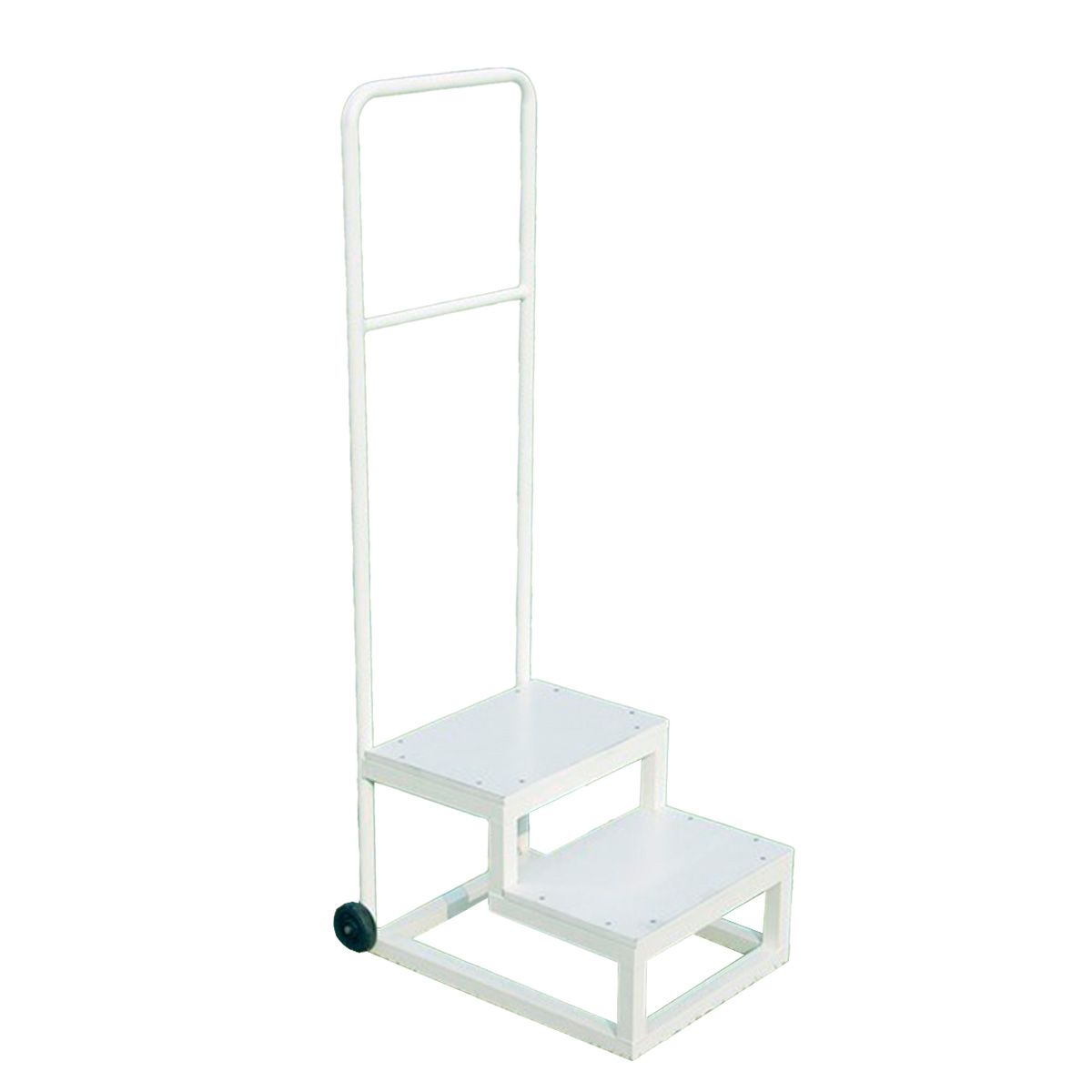 Escada para árbitro de largada para atletismo portátil, fabricada em alumínio de alta resistencia com pintura a pó, possuindo 2 degraus de maderia naval, resistente a água, com 2 rodas para transporte. altura aproximada: 1,60 Metros. Marca: Azul Esportes. Cor: Branca.