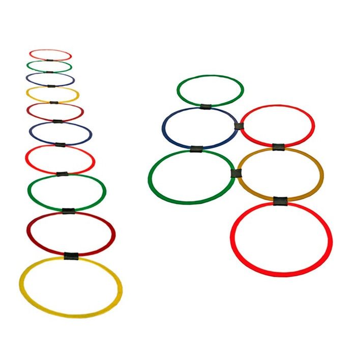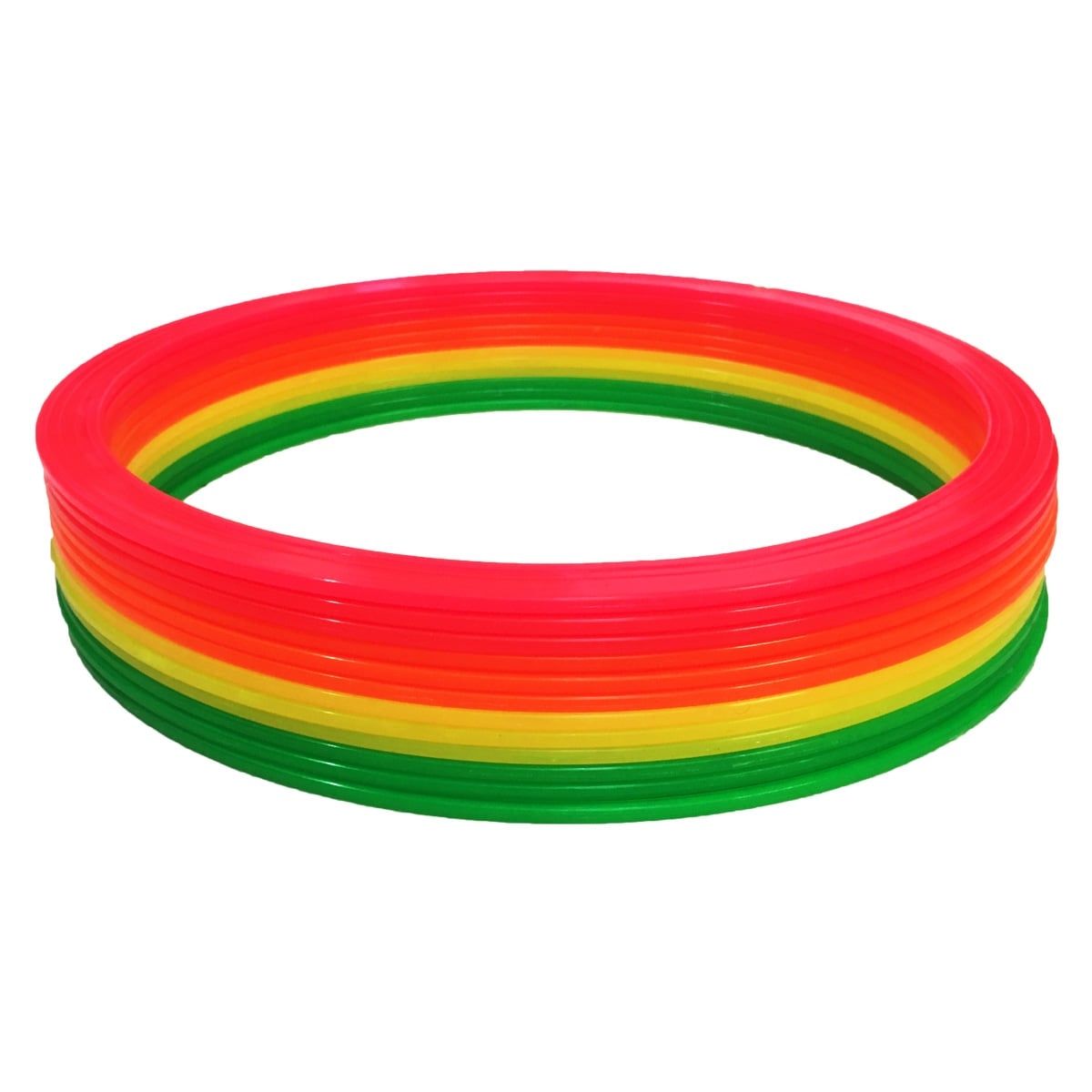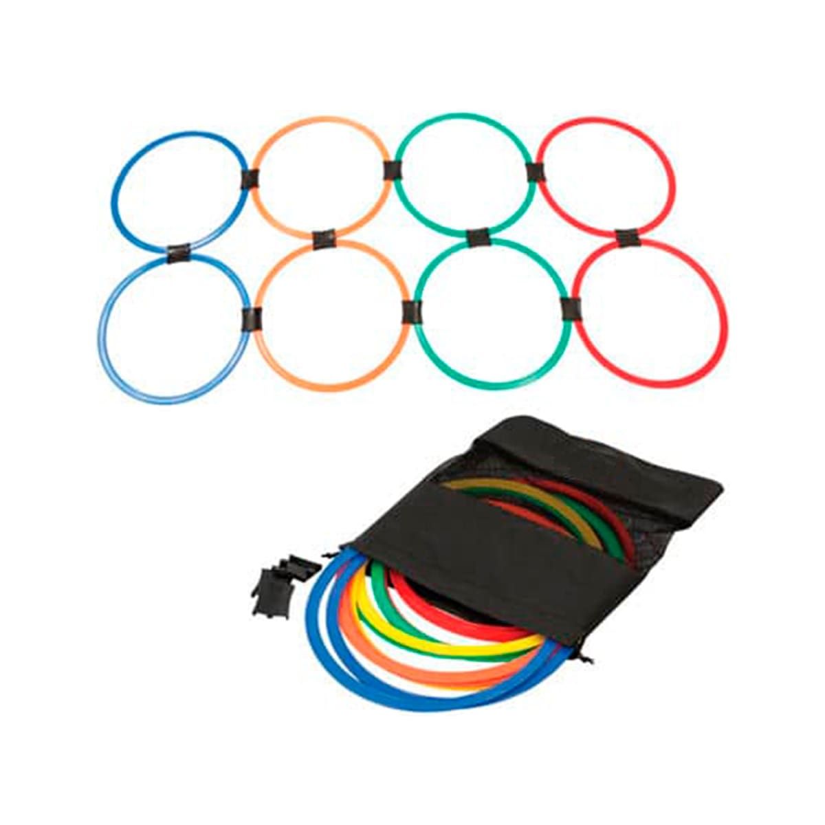 Kit Argolas de agilidade, produzidas em PVC de alta qualidade. Medindo aproximadamente 42 cm de diâmetro. Recomendadas para circuito de coordenação e treinamento de agilidade. Conjunto com 20 unidades. Acompanha bolsa para transporte e trava em pvc para encaixe das argolas. Marca: Azul Esportes.