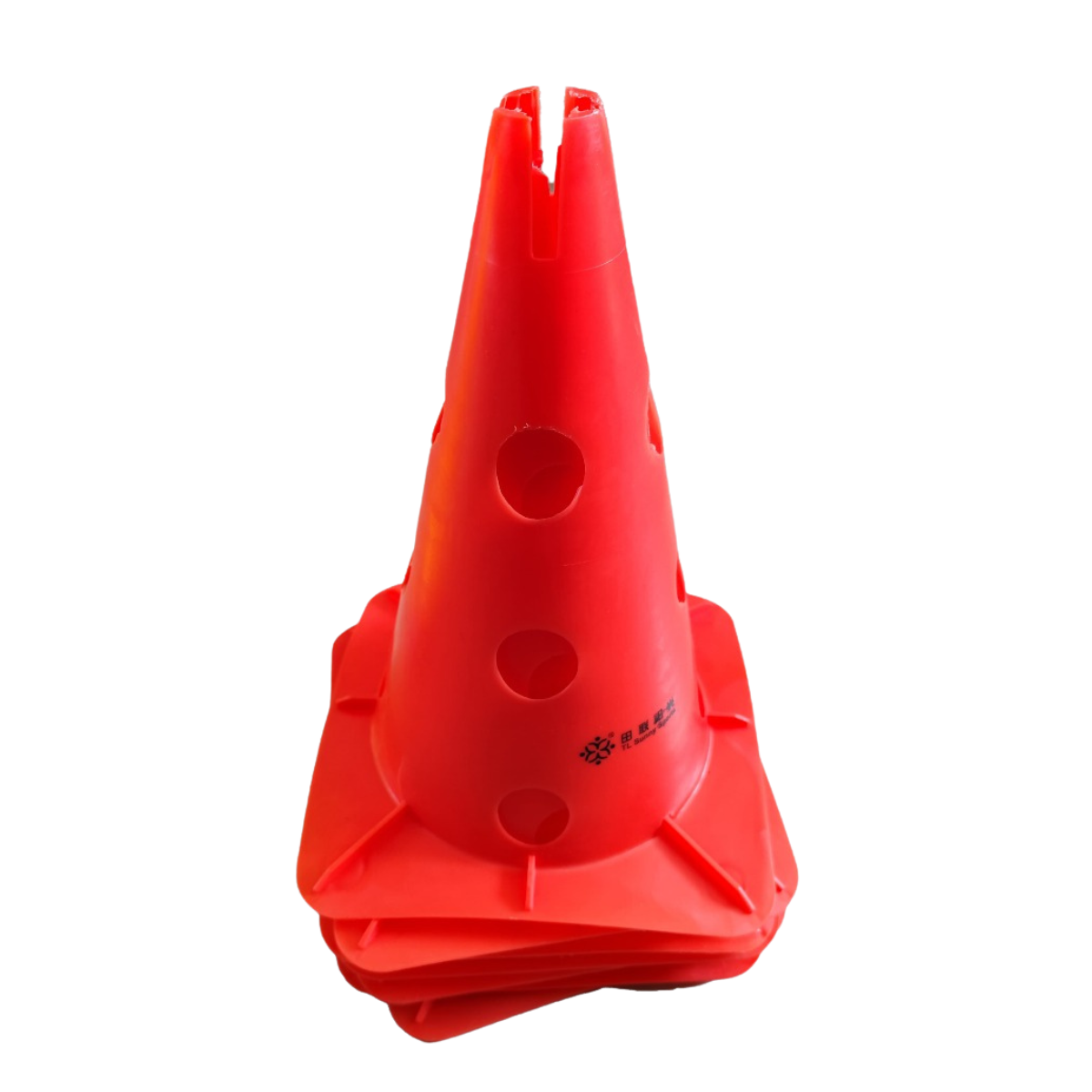 4 cones de 50cm com 3 furos (1 azul, 1 vermelho e 2 amarelos)