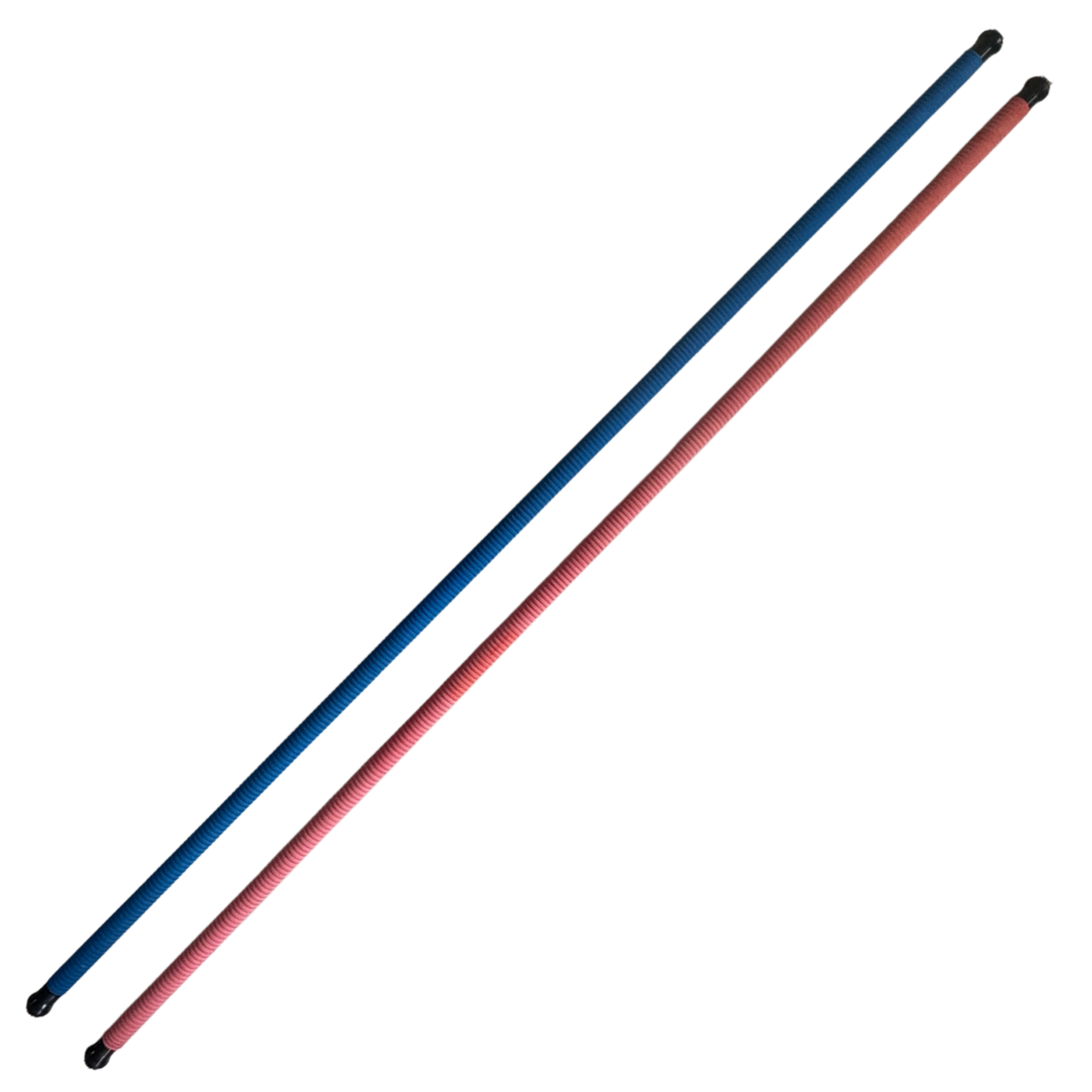 2 varas para iniciação de salto com vara, fabricada em PVC de alta resistência recoberto com espuma para maior aderência e pontas de borracha medindo 2m.