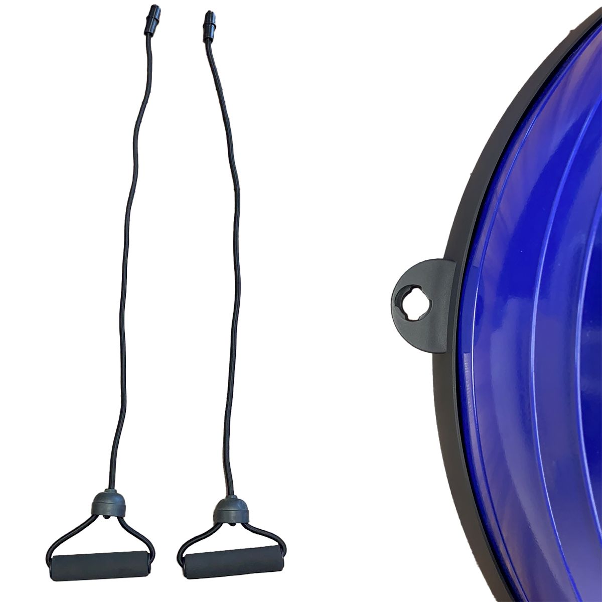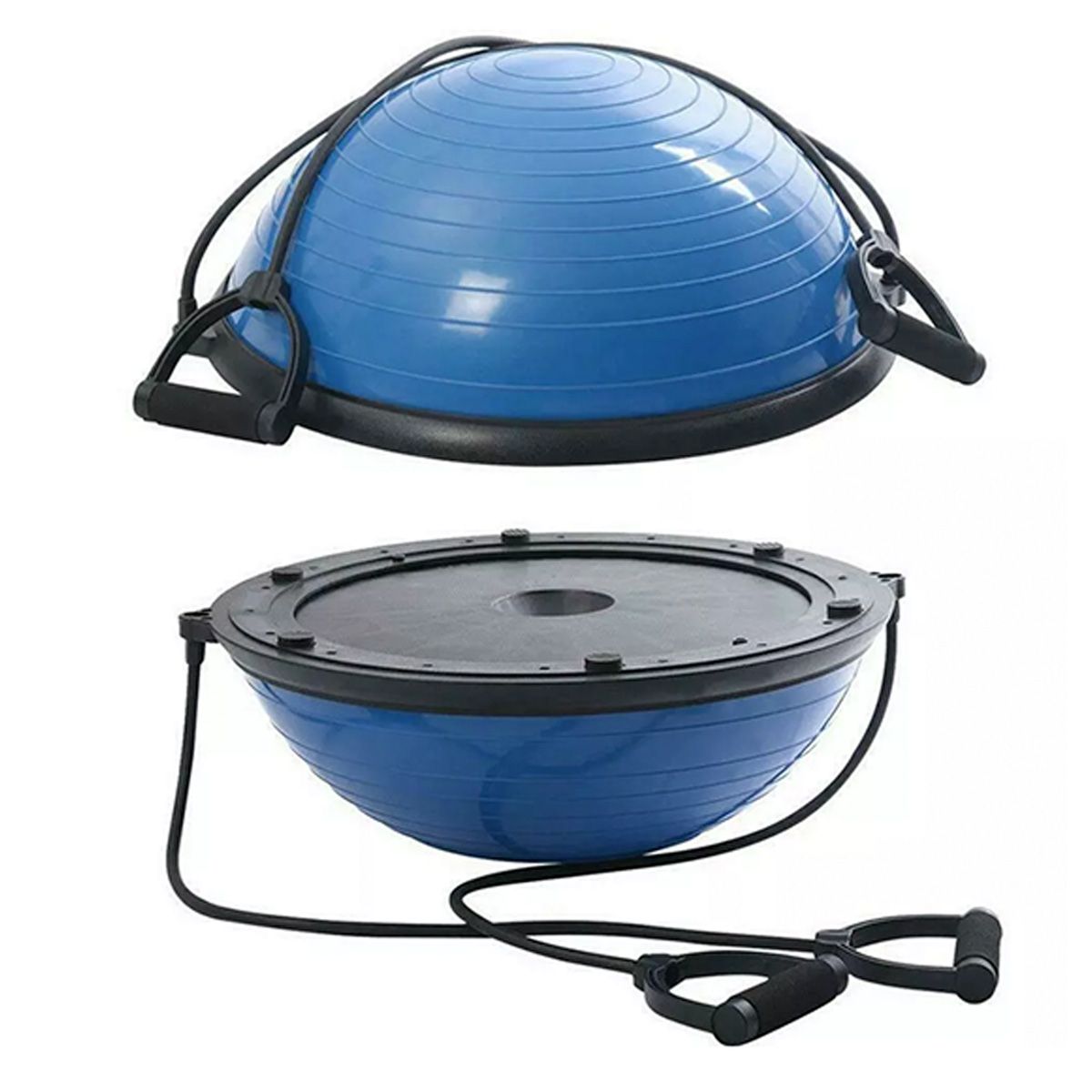 Meia bola bosu com extensores foi desenvolvido para potencializar os resultados de exercícios aeróbicos, concentração e equilíbrio, auxíliando na perda da peso e tonificação de braços e pernas. Contém duas alças fitness para fortalecimento muscular. Conta com uma superfície emborrachada que promove melhor aderência. Meia bola fabricada em PVC com base reforçada em PP com sistema Anti-Burst (Anti-Estouro). Podendo ser utilizado dos dois lados, conforme os exercícios. Diâmetro da Plataforma de 63cm, Altura máximo suportado: 60cm, peso do produto: 4,8kg, peso máximo suportado: 250kg. Extensores medindo: 80cm chegando até 160cm. Acompanha Bomba para inflar, par de extensores elásticos com empunhaduras emborrachadas, par de bicos reserva e um puxador de bico. Cor: Azul. Marca: Athi.
