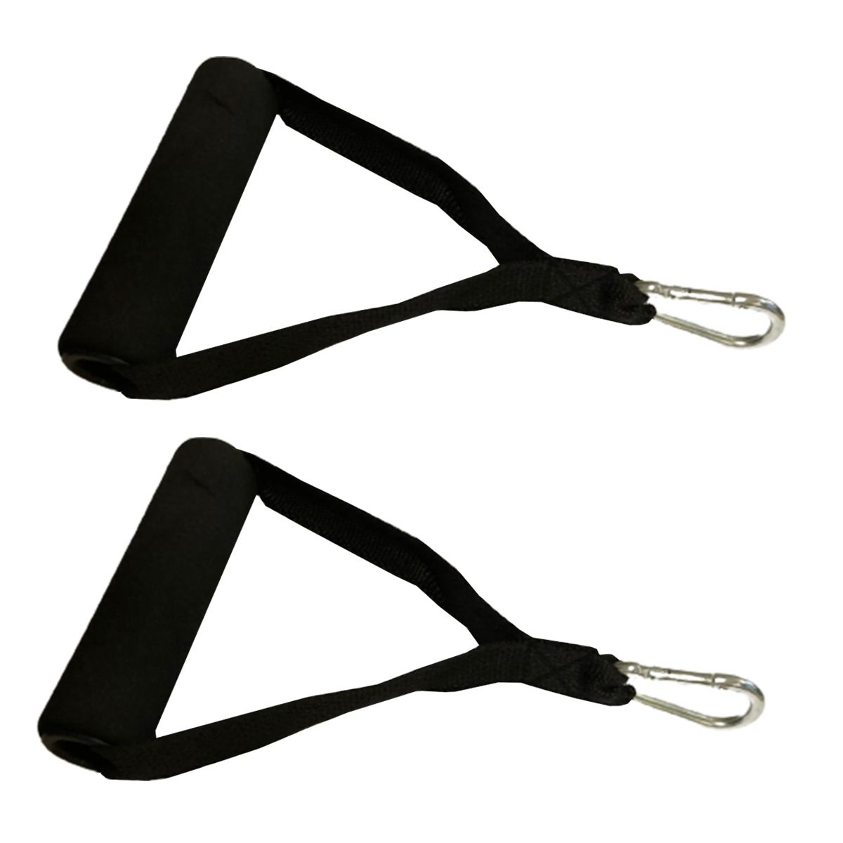 Par de Puxadores P/ Tubo e Faixas Elásticas Thera Band, faixa em nylon com mosquetão de fácil manuseio, para a colocação e retirada de faixas e tubos elásticos. Pegador confeccionado em tubo de PVC com 11cm de pegada e revestimento de espuma de alta densidade. Vendido por par. Marca: Athi.