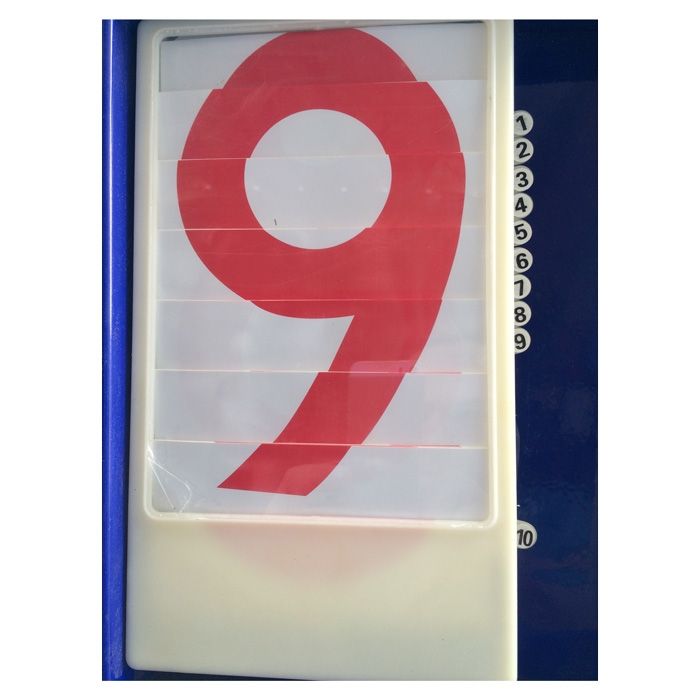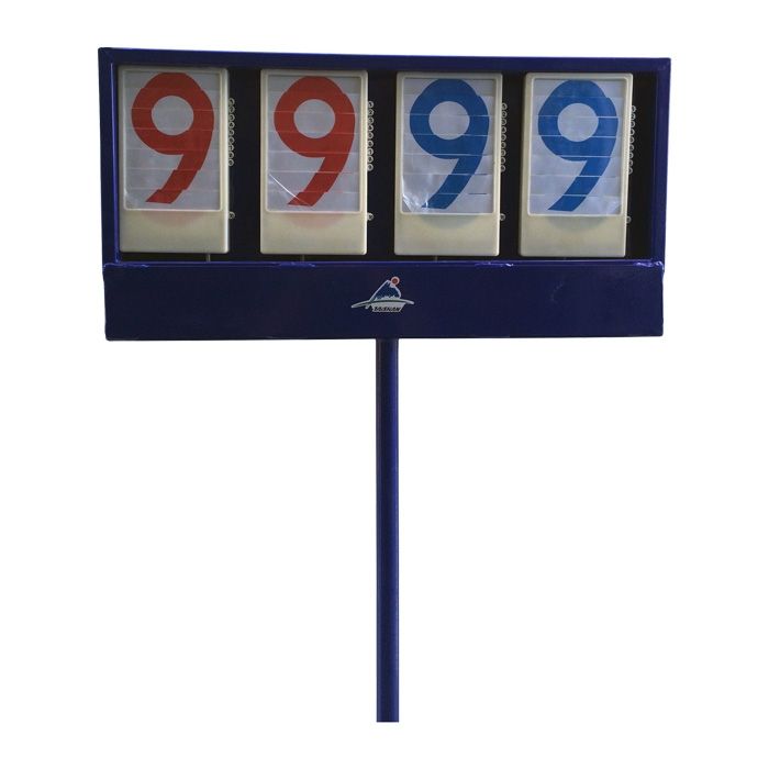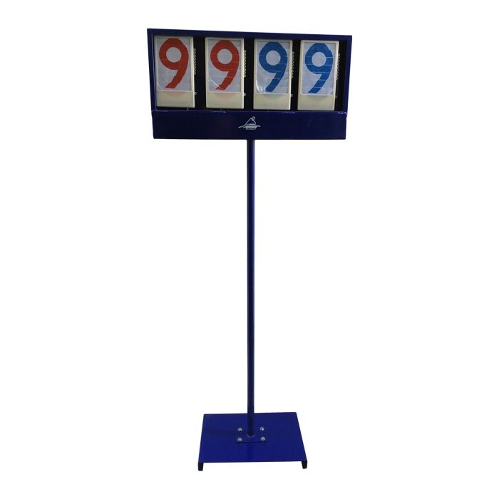 Placar indicador de resultados com quatro algarismo, medindo 23cm de altura cada. Fabricado em alumínio, base quadrada de aço galvanizado com pintura eletrostática a pó. Altura total do placar: 180cm. Marca: Feilu Taishan.