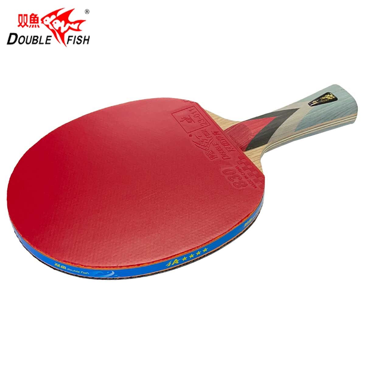 Raquete de Tênis de Mesa profissional modelo 4A+C 4 estrelas; Ideal para jogadores que buscam mais velocidade com grandes efeitos. Equipada com borracha certificada pela ITTF modelo: 23-011 com 2,5mm de espessura, com esponjas internas em ambos os lados. Raquete proporcionando 9 de velocidade, 9 de efeito, 7 de Controle. composta por 7 folhas (camadas) com 6mm de madeira de álamo e superfície em carvalho, entre camadas com madeira basswood, precisa e resistente, ideal para treinos e competições. Cabo modelo clássico, garantindo uma pegada confortável para golpes estáveis de forehand e backhand; Medidas da raquete: 255x150mm, medidas do cabo: 100x25x30mm (AxLxC). Peso aproximado da raquete: 175-185g. Acompanha 2 bolas de tênis de mesa modelo: V40+, 40mm de diâmetro, 1 estrela. Marca: Double Fish. Modelo: 4A+C - 4 Estrelas.