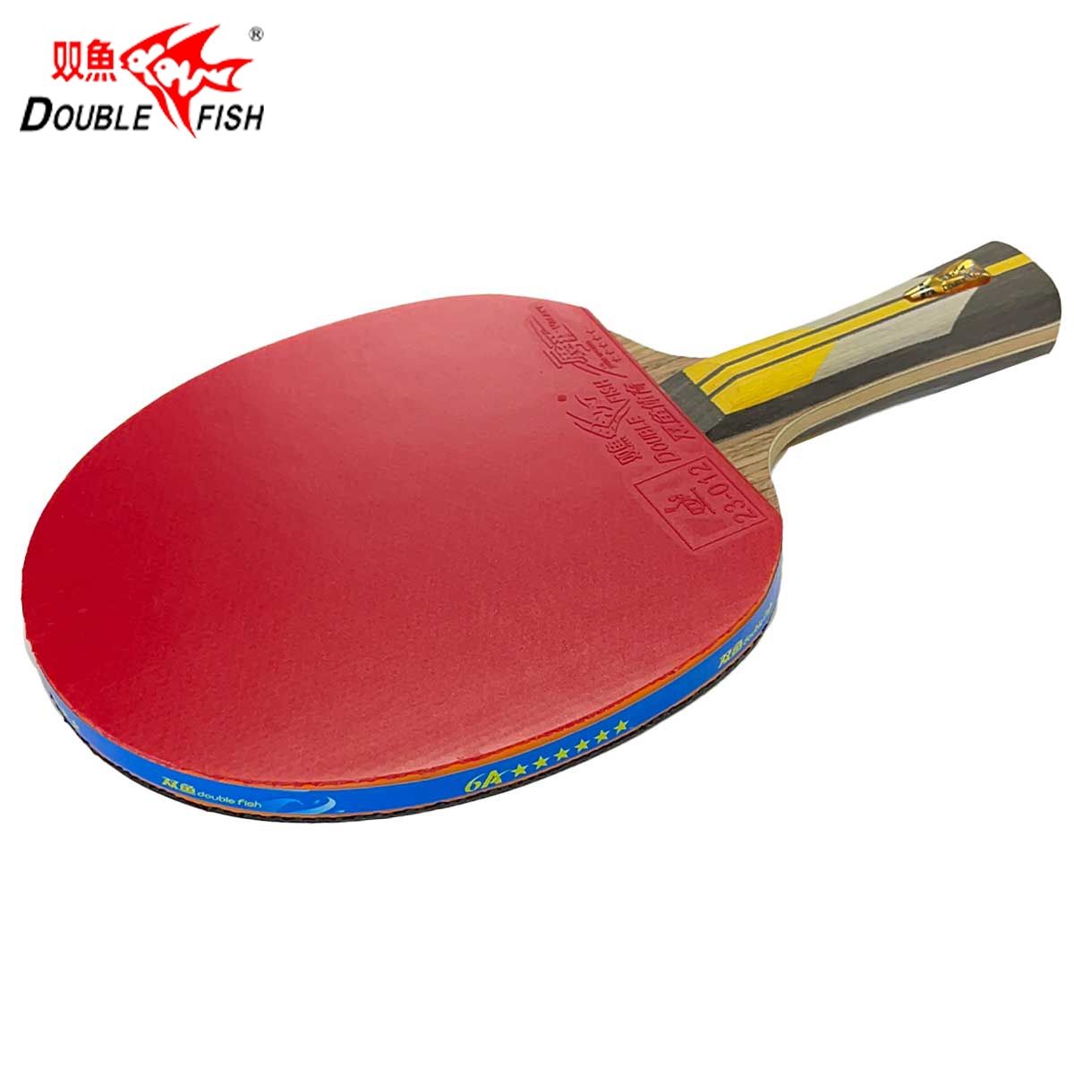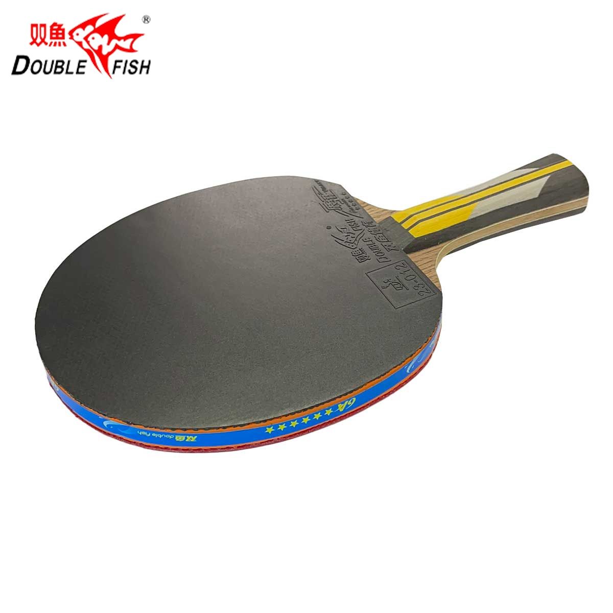 Raquete de Tênis de Mesa profissional modelo 6A+C 6 estrelas; Ideal para jogadores velozes que buscam mais agilidade com grandes efeitos. Equipada com borracha certificada pela ITTF modelo: 23-012 com 2,5mm de espessura, com esponjas internas em ambos os lados. Raquete proporcionando 9 de velocidade, 9 de efeito, 8 de controle. Composta por 7 folhas (camadas) com 6,5mm de madeira de bétula e superfície em madeira de noz preta, entre camadas com madeira de ayous, e núcleo em madeira de castanha, leve e precisa, ideal para treinos e competições e torneios. Cabo modelo clássico, garantindo uma pegada confortável para golpes estáveis de forehand e backhand. Medidas da raquete: 255x150mm, medidas do cabo: 100x25x30 mm (AxLxC). Peso aproximado da raquete: 170-180g. Acompanha 2 bolas de tênis de mesa modelo: V40+, 40mm de diâmetro, 1 estrela. Borracha certificada pela ITTF. Marca: Double Fish. Modelo: 6A+C - 6 Estrelas.