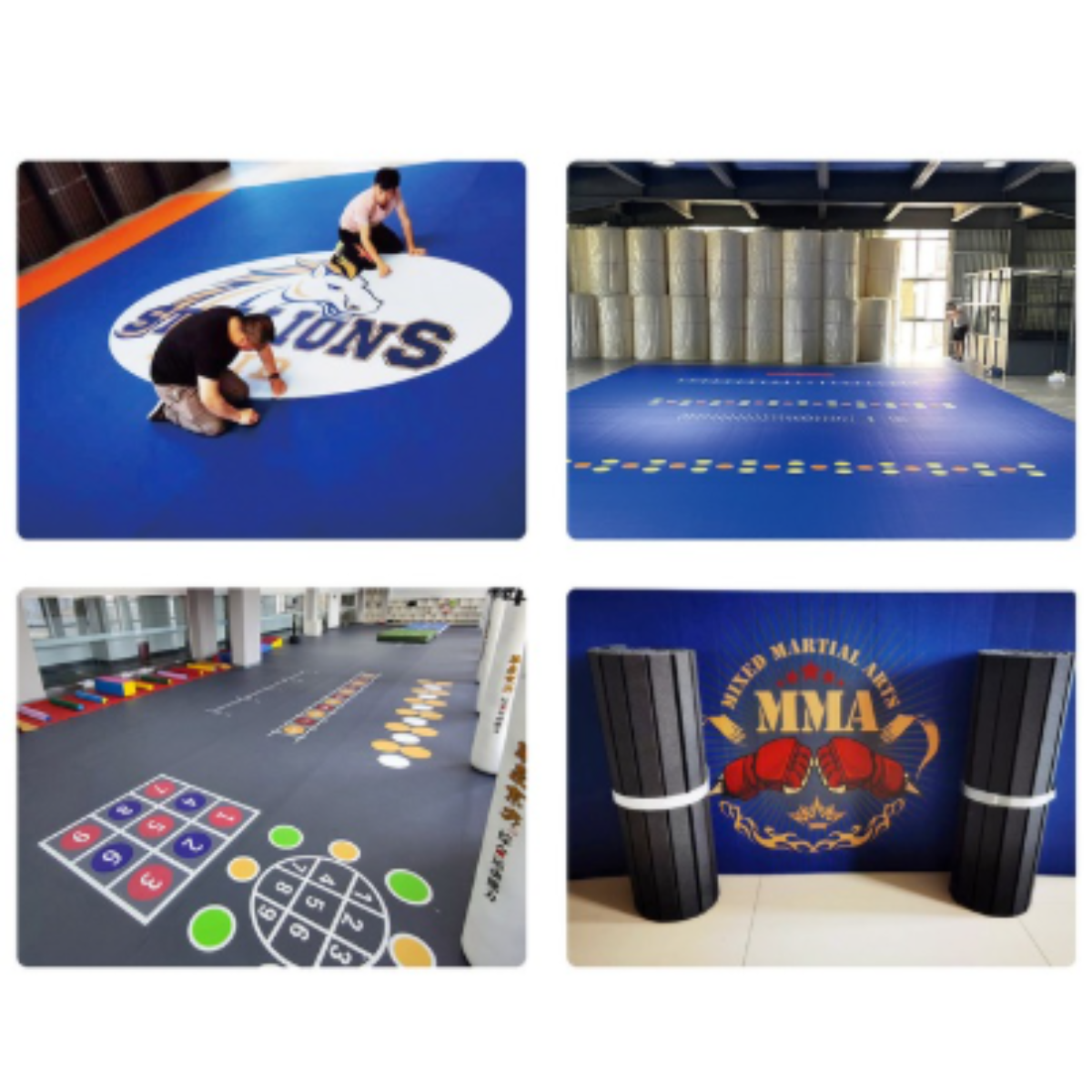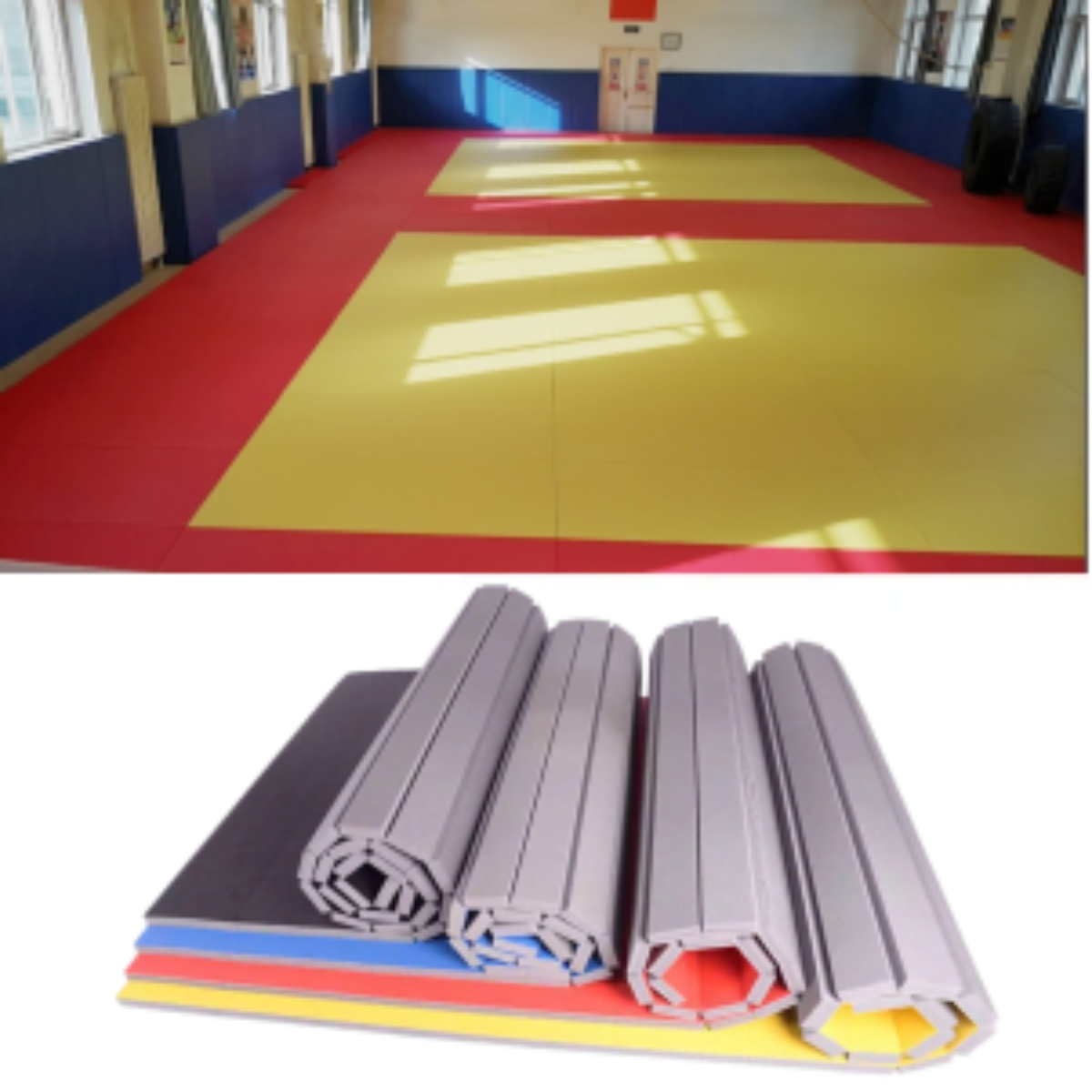 TABLADO PARA JUDÔ E JIU JITSU COM VELCRO DE FÁCIL INSTALAÇÃO E ARMAZENAMENTO, FABRICADO EM POLIETILENO RETICULADO (XPE) DE ALTA DENCIDADE PARA AMORTECIMENTO, MINIMIZANDO OS IMPACTOS E AS LESÕES, COBERTURA EM PVC TEXTURIZADO PARA GARANTIR MELHOR ADERÊNCIA E RESISTÊNCIA A RUPTURA E BASE COM FUNDO ANTIDERRAPANTE. FABRICADO EM 4 ROLOS DE 1,5X14M, 9 ROLOS DE 1,5X8M, 1 ROLOS DE 0,5X8M COM 40MM DE ESPESSURA, UTILIZANDO VELCRO PARA UNIR AS PLACAS E FORMAR A ÁREA MEDINDO 14X14M COM 196M². POR SER FABRICADO EM ROLOS, PODE SER DESMONTADO, TRANSPORTADO E MONTADO EM DIFERENTES CENTROS ESPORTIVOS COM FACILIDADE.
